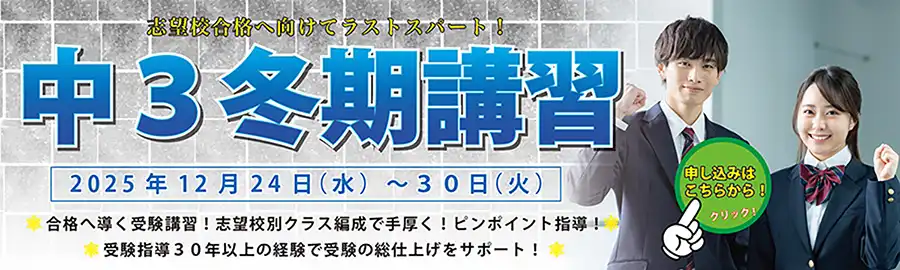 3月5日(水)、生憎の雨ですが、本日は静岡県の公立高校筆記試験の当日となりました。 マイティー進学院に通った中3生は、この日のためにマイティーで日々勉強を続けてきました。 本当にここまでよく頑張ってくれましたǴ […] - 2024 夏期講習開催!『夢は逃げない!逃げるのはいつも自分だ!』 今年も、圧倒的な量と質の夏期講習を開催いたします! 小学3年~6年・・・算数/国語 個別指導 英語/英会話 グループレッスン 中学12年・・・数国・英国・理社 […]